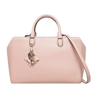Un bolso versátil, elegante y estructura sencilla, que permite jugar con sus metálicas y los diferentes charms disponibles para personalizarlo caprichosamente. Situadas en las bases de las asas, estas metálicas cumplen de hecho una triple función: decorativa, como soporte del asa bandolera y como sujeción del charm elegido.