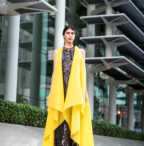 El ambiente citadino resultó ser el escenario perfecto para la propuesta de texturas metálicas y abrillantadas con tonos neutros como el plata, negro, blanco y dorado. Destacándose su distintivas siluetas asimétricas y de cortes modernos que proyectan una mujer de buen vestir en medio de la ciudad.