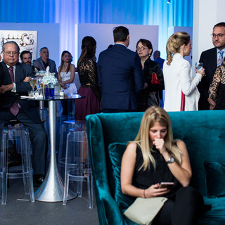 The Atelier presentó su exquisita gastronomía en una atmósfera acogedora en tonos azules, diseñada por AKUA en el espacio creativo y moderno del artista Carlos Mercado, The Art & Design Studio.