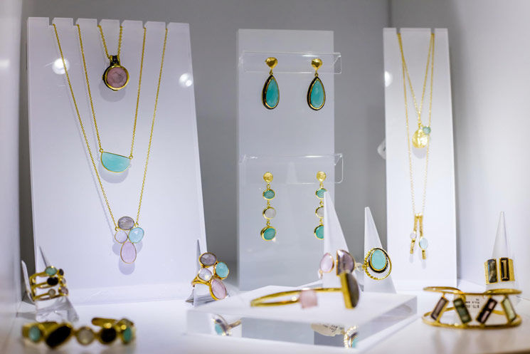Sumaq también cuenta con la línea RUMI, una colección de piezas en baño de oro de 18K y piedras semipreciosas, diseñadas por ellos mismos. Estas piezas se destacan por su colorido, versatilidad y elegancia."