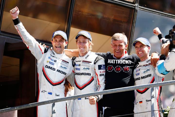 Earl Bamber logró su segunda victoria total en Le Mans al volante del Porsche 919 Hybrid, tras la que obtuvo en 2015. También para Timo Bernhard es el segundo triunfo absoluto en Le Mans. Después de haber cosechado el primero en 2010, cuando fue cedido para que corriera con Audi, él soñaba con repetirlo algún día con Porsche. Brendon Hartley era quien estaba más hambriento de los seis pilotos oficiales del Equipo Porsche LMP, pues su nombre todavía no estaba grabado en este inmortal trofeo.