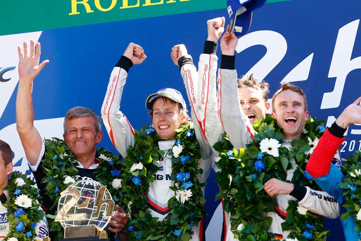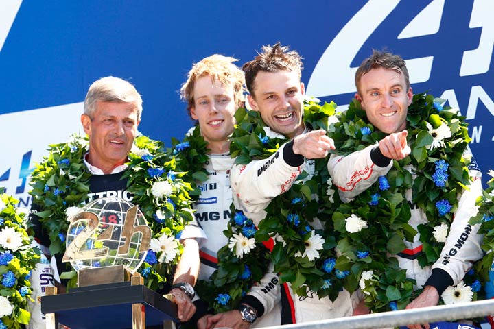 Michael Steiner, miembro de Consejo Directivo de Porsche AG responsable de Investigación y Desarrollo: “El triplete en Le Mans es un sueño hecho realidad para Porsche, y la forma en que se ha conseguido esta tercera victoria consecutiva es muy especial. Estoy orgulloso del Equipo Porsche, que ha seguido peleando a pesar de esa larga parada que tuvimos que hacer para reparar la avería del auto que a la postre sería el vencedor. Este éxito también llega gracias al excelente rendimiento de nuestros motores eléctricos y a la innovadora tecnología híbrida”.