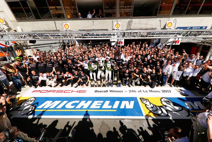 Fritz Enzinger, Vicepresidente del Proyecto LMP1: “Uno de nuestros ambiciosos objetivos para la temporada 2017 era lograr el triplete en Le Mans. Pero lo que hemos tenido que pasar a lo largo de las últimas 24 horas no te lo puedes ni imaginar en tus peores pesadillas. Esta carrera de 24 horas ha puesto todo y a todos al límite. Es increíble lo que se puede conseguir con el esfuerzo de un equipo. Algunas veces no es el auto más rápido sino el mejor rendimiento como equipo lo que marca la diferencia. Este equipo es el mejor de todos y ha hecho posible el éxito de hoy. La reacción desde todas partes está siendo abrumadora, desde los empleados de Porsche los aficionados de todo el mundo. Personalmente sólo puedo decir gracias a Porsche por situarme en el puesto para llevar a cabo un programa tan extraordinario como éste, y gracias a cada uno de los miembros del equipo por el apoyo total y el gran espíritu de grupo”.