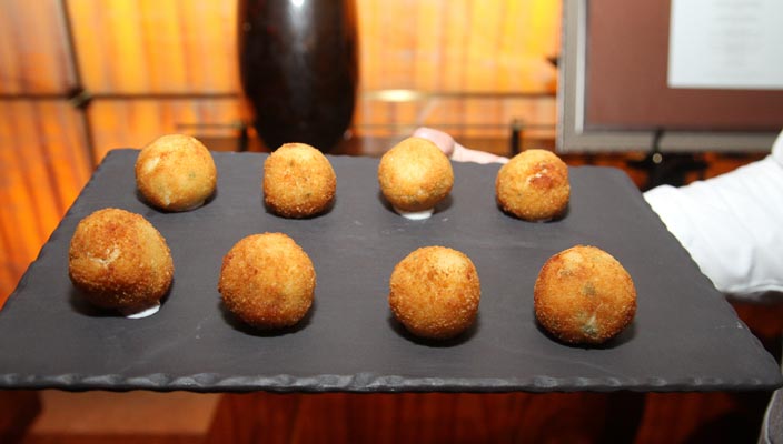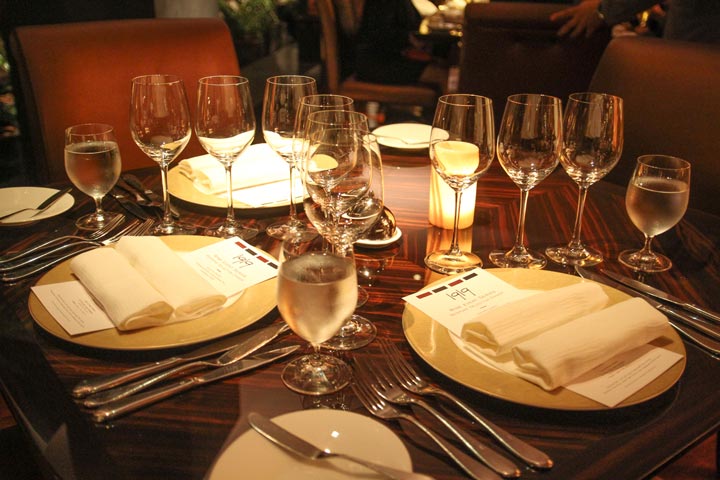 La velada comenzó al atardecer con un cóctel con el champán Besserat de Bellefon Cuvee des Moines Brut y aperitivos tales como: morcilla con huevos de codorniz, croquetas de bacalao, tártar de carne en chip de yuca, emparadedo de pork belly con pepino preparados por el equipo del restaurante 1919 dirigidos por el Chef Cuevas y la Sous Chef Carol Reyes.
