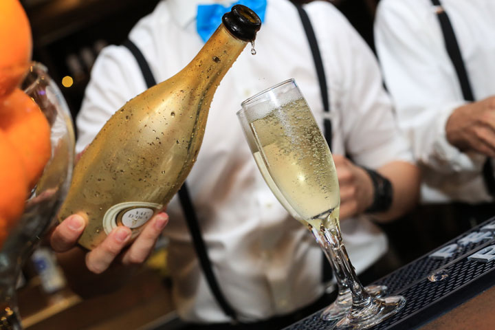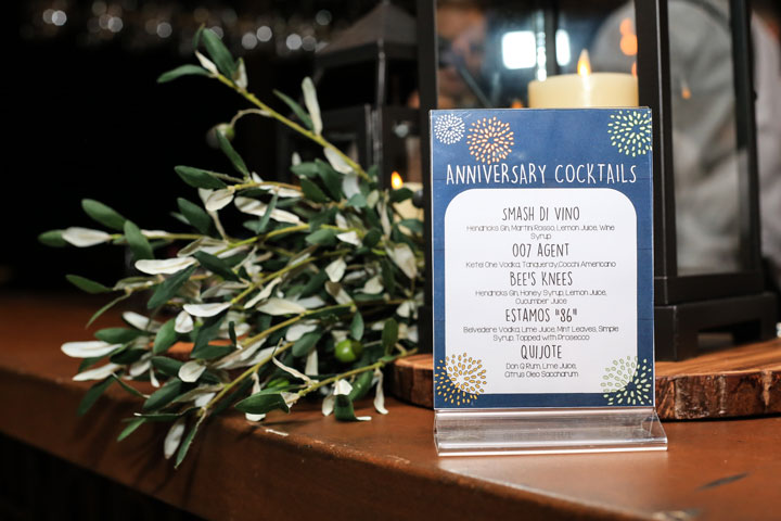 El bar presentó un menú especial de cócteles creados por el grupo de mixólogo del bar. Estos fueron Smash di Vino y Bee’s Knees con ginebra Hendricks, Estamos “86” con vodka Belvedere, el Quijote con Don Q, Fashionista con Johnnie Walker Black, Monkey Julep con Monkey Shoulder, Tanqueray Klub con ginebra Tanqueray, el 007 Agent con Ketel One y el tradicional Negroni. Los invitados disfrutaron de la cerveza Peroni y una variedad de vinos y prosecco.