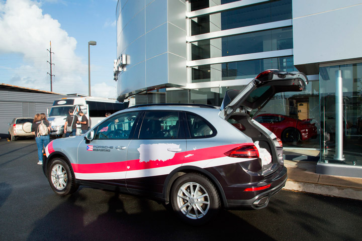 La iniciativa Expedición Porsche: Misión Puerto Rico, hecha realidad gracias al equipo de Porsche Center, amigos y voluntarios, intenta alivianar las necesidades básicas de personas que todavía viven bajo precarias condiciones luego del paso del huracán María en la isla, al entregar bolsas llenas de suministros con artículos esenciales como comida enlatada, arroz, agua embotellada, baterías, lámparas solares y frisas para el frío.
