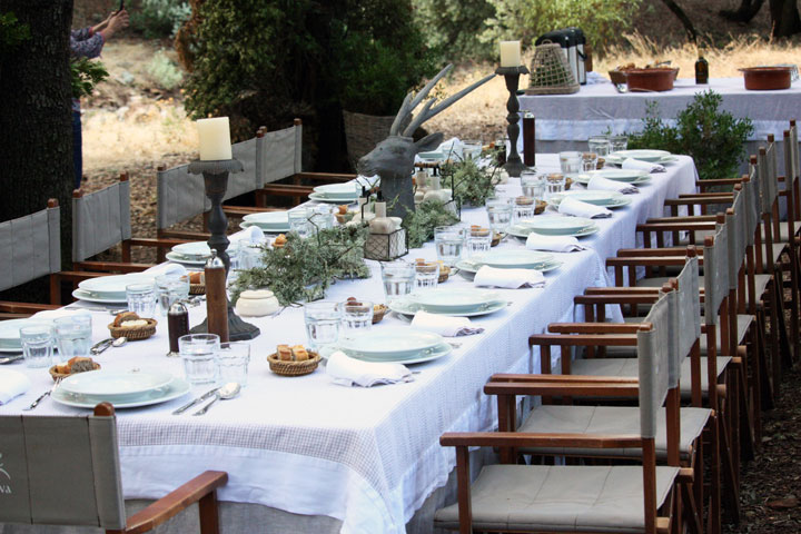 Cuando el tiempo lo permite, puede montarse una comida campera que el equipo de la Nava organiza elaborando el menú “in situ” con una cocina móvil que se instala en pleno campo. Una puesta en escena de cine, con una mesa montada exquisita, digna del mejor salón, gracias al buen gusto, la delicadeza de las vajillas de porcelana y de los manteles y servilletas, sello inconfundible de la casa, que acompañan una rica comida de gran refinamiento. Y antes de sentarse a la mesa, un aguamanil para refrescarse, con agua caliente ¡caliente, en mitad del campo!
