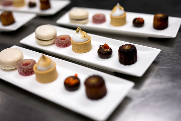 Le sigue el ravioli de pato con crema de calabaza y prosciutto, servido con el vino Aska, de la tierra toscana de Bogheri, en Livorno. El cuarto curso consiste en solomillo de ternera relleno con ciruelas de los viñedos Banfi, caponata –guiso clásico de la cocina siciliana a base de vegetales–, papas y salsa de vino brunello, elaborado con uvas sangiovese. Este plato fuerte es acompañado con el galardonado Poggio All’Oro, Brunello di Montalcino.