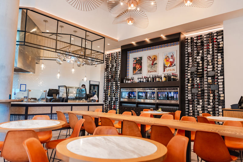 Barullo Taberna Española ofrece una experiencia culinaria con raíces españolas curada por el Chef Osvaldo Ortega, dentro de un espacio que rinde homenaje al Mercado San Miguel de Madrid.