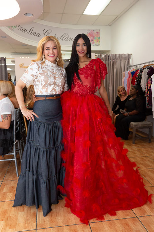 La clientela de Carolina se distingue rápidamente, gracias a la elegancia y versatilidad de los diseños de la modista, quien dejar ver influencias latinas y europeas en sus piezas.