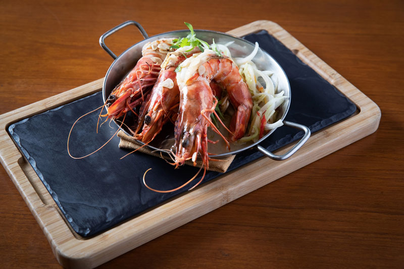 Los aperitivos varían desde vieiras, langostinos, pasta bucatini, pork belly cocinado a fuego lento con glaseado de tamarindo y cilantro, y la pièce de résistance: el foi-gras sellado con mermelada de plátano amarillo y reducción de Oporto.