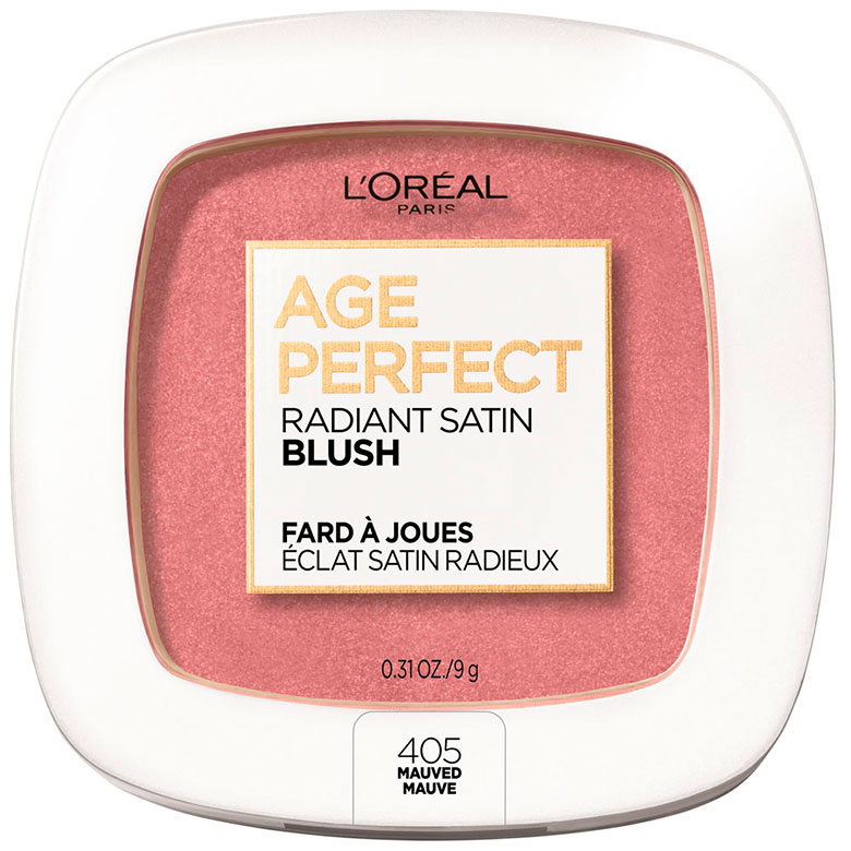 Hydrating Powder Foundation es el polvo de la línea Age Perfect que rellena y suaviza las líneas de expresión en la piel y está formulado con ceramidas antioxidantes. Para darle el toque final al maquillaje de rostro está el Satin Glow Blush, que provee un toque sutil de color a las mejillas y es formulado con aceita de camelia.